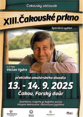 Pozvánka na přehlídku amatérského divadla a hudby v Čakově 13. - 14.9.2025